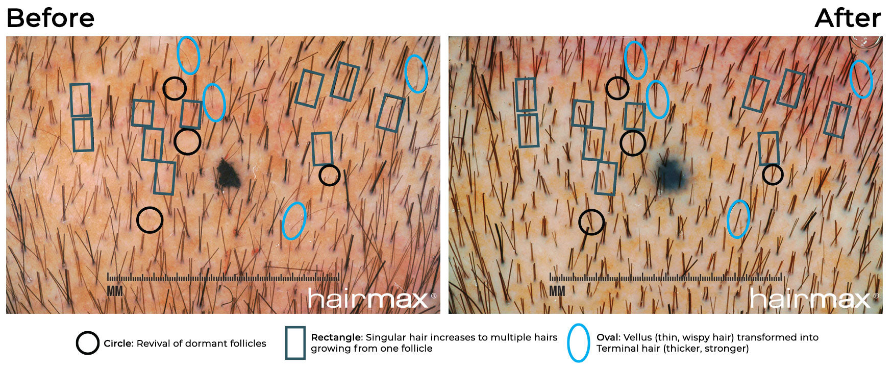 Hairmax® has helped men and women around the world regrow denser, fuller more vibrant hair. Below are before and after photos showing hair growth results Hairmax® laser device users have achieved. Please take some time to review the before and after photos below. Included are clinical study photos, independent user photos, and photos provided by physicians and hair loss specialists showing the results their clients have experienced.